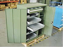 放置9804零件盒15个,9803零件盒10个,9802零件盒18个, 门上挂板各配9811零件盒15个(5排),9812零件盒12个(4排) |